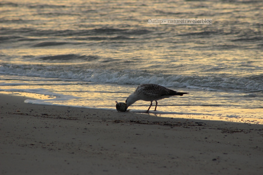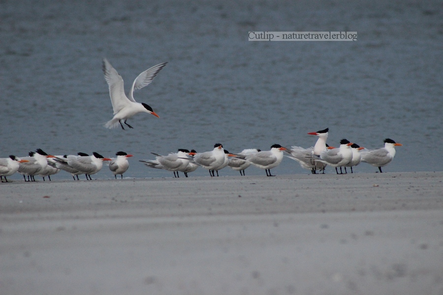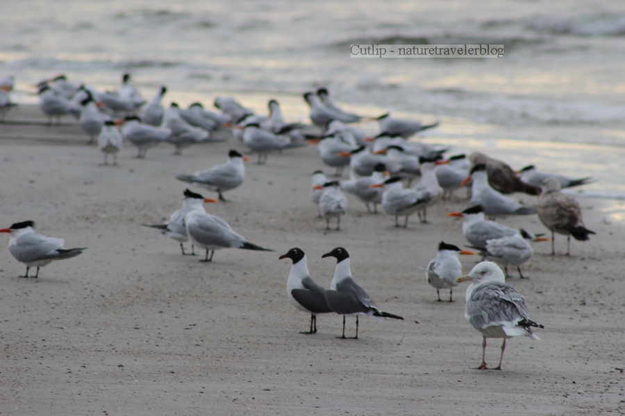 During my walk, I noticed several birds feeding just off shore on the east side of the point. I made a comfortable seat out of a soft pile of sand and positioned myself for the show. Several gulls, terns, and pelicans dove into the water, trying to catch their unsuspecting breakfast. The small terns hovered about thirty feet in the air before folding back their wings and elegantly diving straight down into the water. The much larger pelicans swooped down, clumsily slamming themselves on the surface, using their over-sized gullets to snatch their prey.