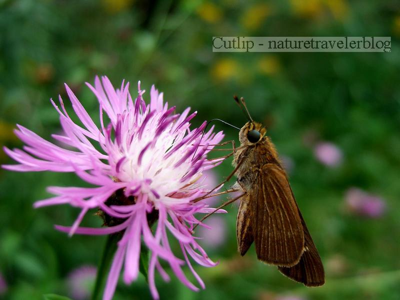 Camping at Seven Springs Farm. I clambered out of my tent and walked through the dew-covered pasture. The low, morning sun had just peaked over the distant tree line, giving this grasshopper and flower a soft, golden hue.