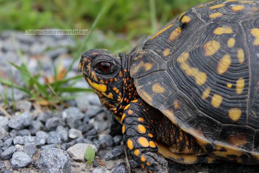 High up on the ridge of Peter’s Mountain, I was painting trail blazes along a remote section of the Appalachian Trail. The weather that day was perfect for trail work; a refreshing, cool breeze blew lightly from the west side of the ridge, and beams of golden sunlight penetrated the layers of the thick, dark-green foliage, the greenery that is prevalent during the hot days of August. At one point during the hike, a sprightly frog jumped out in front of my feet. I put down my tools and grabbed my camera. On my hands and knees, I followed the frog down the trail. This frog did not cooperate with my request for a pose as it continued hopping and keeping a safe distance. After many feeble attempts to get close, I decided to give up and move on with my hike. When I stood up on my feet, the frog hopped away a few more times, landing on a log and sitting still for a few moments. I thought to myself, one more try. I got down again and slowly crawled towards the log. The frog did not flinch, allowing me to get about two inches away for some great macro shots. After taking a few pictures, I slowly backed away and returned to my tools. When I walked by the log several minutes later, the frog was still sitting in the same position.